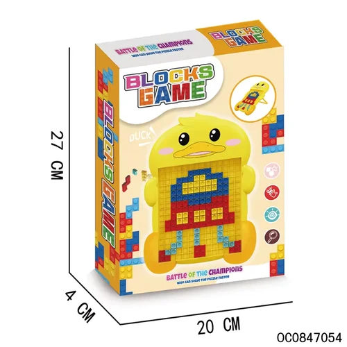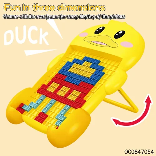 لعبة بطة تركيب أحجيات (Puzzle) هي لعبة تعليمية إبداعية مصممة لمساعدة الأطفال على تنمية مهاراتهم الذهنية والحركية بطريقة ممتعة وآمنة. تعتمد اللعبة على لوحة مزودة بشبكة يتم تركيب قطع الموزاييك الملونة عليها لتكوين أشكال ورسومات ثنائية الأبعاد مثل البطة أو تصاميم مبتكرة من خيال الطفل.