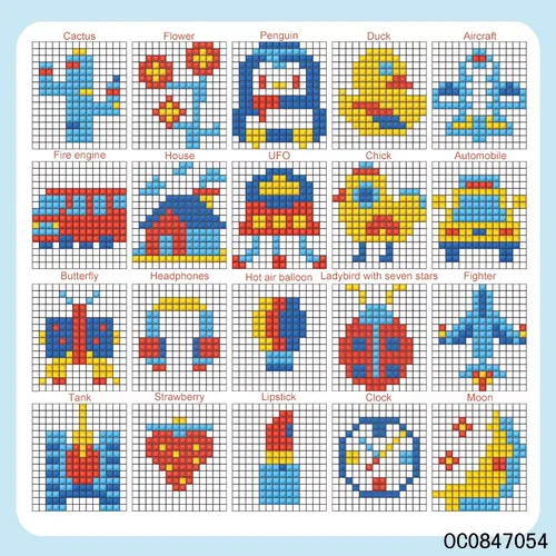تتكوّن اللعبة من قطع بلاستيكية صغيرة بأشكال وألوان مختلفة (مربعات، مستطيلات، أشكال L وT)، سهلة الإمساك ومناسبة لأيدي الأطفال. يقوم الطفل بتركيب القطع داخل اللوحة بدقة، مما يساعد على تطوير المهارات الحركية الدقيقة، التناسق بين اليد والعين، والتركيز.