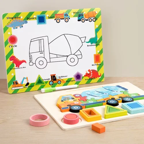 لعبة تعليمية متكاملة تجمع بين المتعة والتعلّم، مصممة وفق منهج Montessori لتنمية ذكاء الطفل منذ سن مبكرة. هذه اللعبة الخشبية 3 في 1 تأتي على شكل شاحنة تفريغ (Dump Truck) يمكن تفكيكها وتركيبها كلغز ثلاثي الأبعاد، إضافة إلى أشكال هندسية وأرقام تساعد الطفل على التعرّف على الأشكال، العد، والتناسق البصري. في الجهة الخلفية، تتوفر اللعبة على لوح كتابة أبيض (White Board) مع قلم مرفق، يتيح للطفل الكتابة، الرسم، أو الخربشة بحرية، مما يعزز الإبداع والتعبير الذاتي.