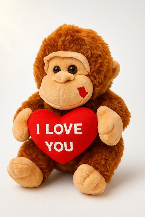 • تصميم لطيف ومعبّر: قرد مبتسم يحمل قلبًا مكتوبًا عليه “أحبك”، مناسب لكل المناسبات.