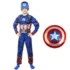 يتميز هذا الزي بتصميم عضلي بارز يمنح مظهرًا قويًا وجذابًا، ويجعل الطفل يشعر وكأنه كابتن أمريكا الحقيقي.
