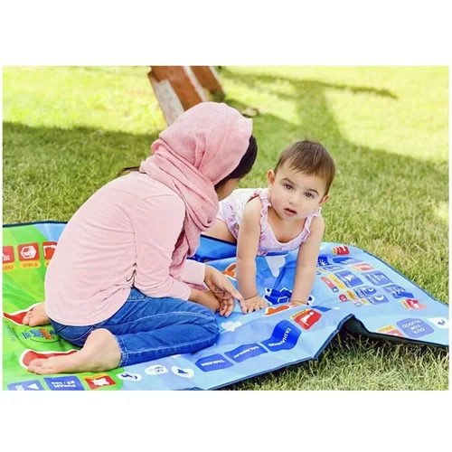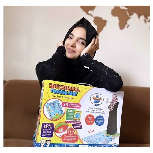 تعلم شامل للقرآن والدعاء: تتضمن السجادة تلاوات من القرآن بصوت قارئ مع إجازة، لتعليم الأطفال السور، الأذان، الصلاة، والأدعية المهمة.