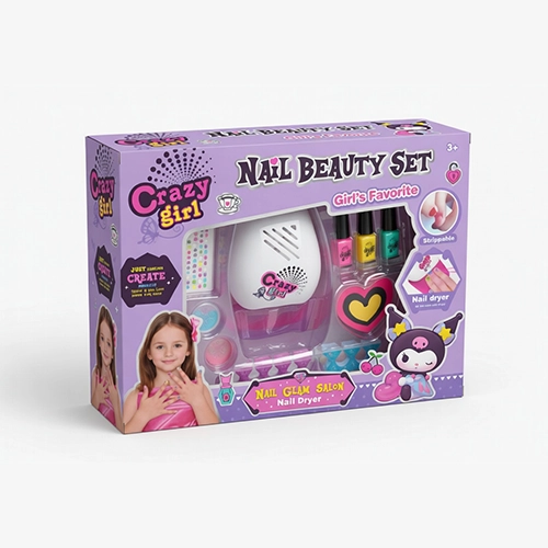 يحتوي الطقم على مجفف أظافر يعمل بالبطارية يساعد على تجفيف الطلاء بسرعة، بالإضافة إلى 3 ألوان من طلاء الأظافر اللامع المائي مع مجموعة من الزينة مثل الجليتر وأحجار الزينة والملصقات، مما يمنح الأطفال تجربة تزيين ممتعة ومميزة.