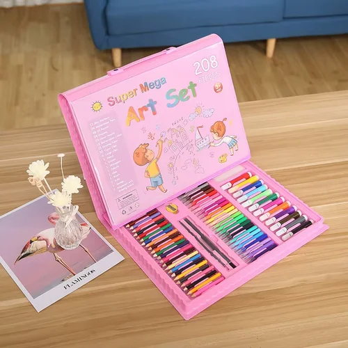 اكتشف موهبة طفلك الفنية مع مجموعة أدوات الرسم الاحترافية 208 قطعة لتناسب جميع احتياجات الرسم والتلوين. تتضمن المجموعة: أقلام تلوين شمعية، أقلام زيتية، ألوان مائية، ألوان خشبية، أوراق رسم، لوحة رسم مزدوجة، مسطرة، ممحاة، وملحقات فنية أخرى، لتتيح للأطفال تجربة إبداعية شاملة وممتعة.