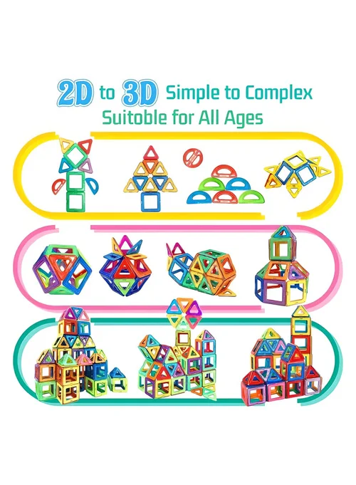 تم تصنيع القطع من مواد PC عالية الجودة، آمنة وغير سامة، مع حواف ناعمة لحماية أيدي وفم الطفل، هذه اللعبة تعزز المهارات الحركية الدقيقة، التفكير الإبداعي، التركيز، والفهم الهندسي والتصميمي للأطفال من عمر 3 سنوات فما فوق.